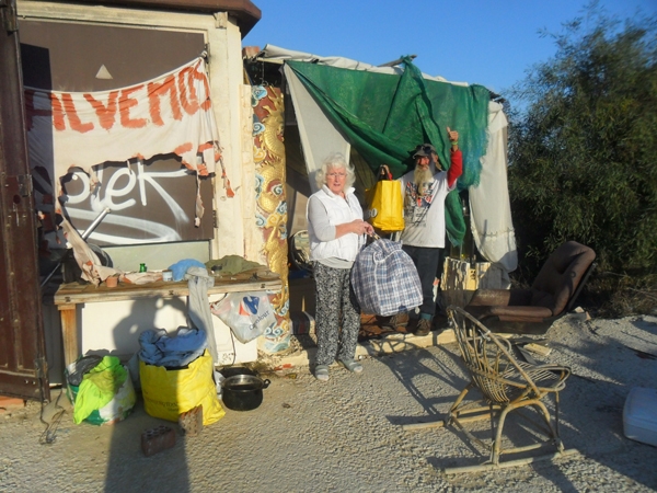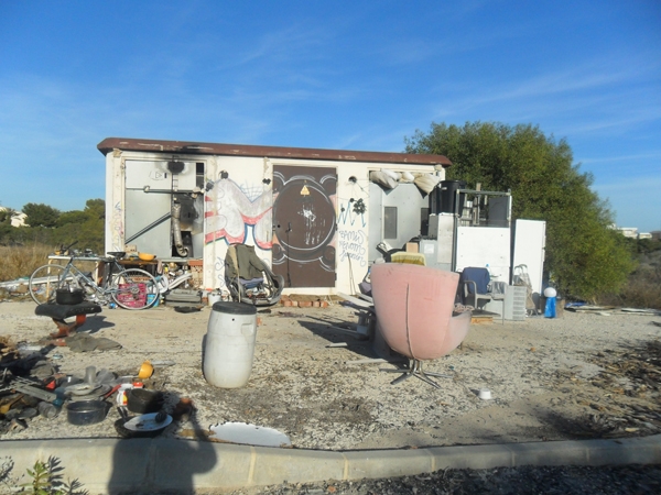 In Punta Prima there’s a commune of people thrown out of work when the building boom burst. On the open land opposite Carrefour on the N332 there are people living in make-shift corrugated iron shelters. There’s at least another living on waste ground less than a quarter of a mile from us.