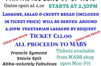 MABS biggest fundraising event of the year will be on Sunday 30th September from 2.30pm. Gates open at 2.00pm. There will be a fantastic line up of acts.