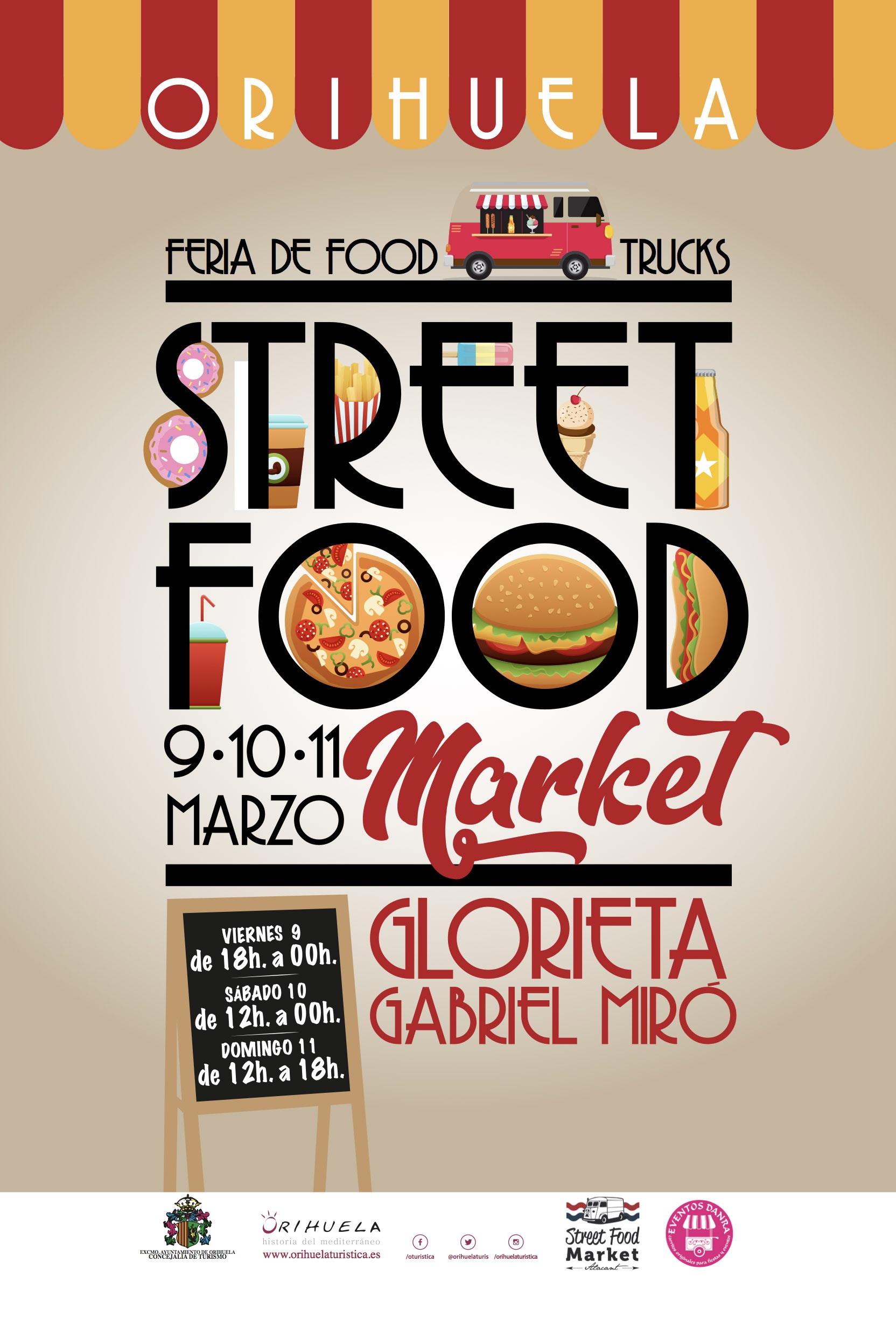 STREET FOOD MARKET: from 9th till 11th March in Gabriel Miró square in Orihuela.
