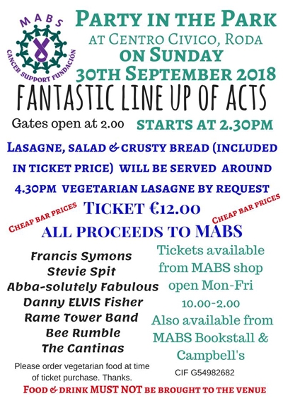 MABS biggest fundraising event of the year will be on Sunday 30th September from 2.30pm. Gates open at 2.00pm. There will be a fantastic line up of acts.